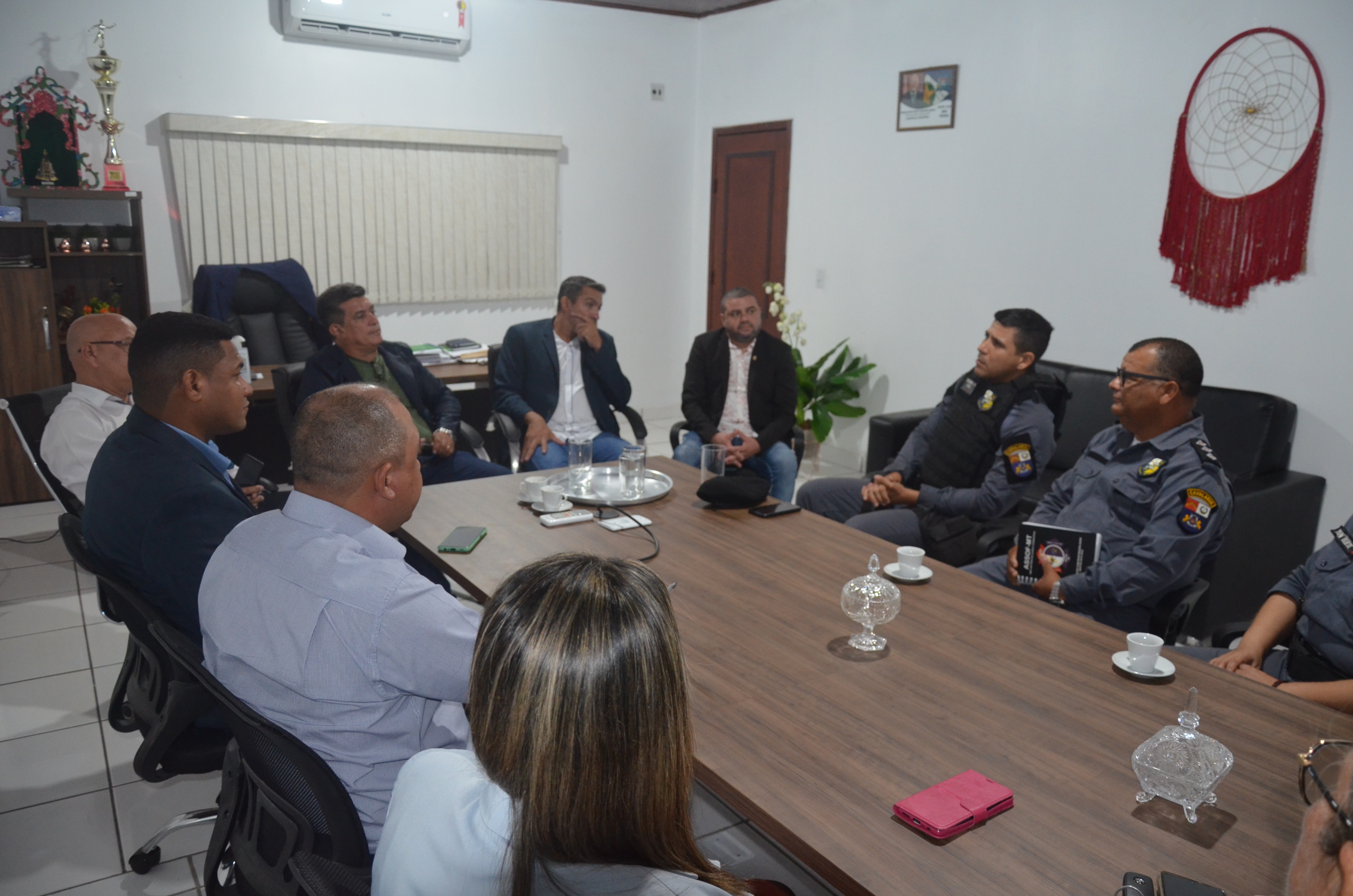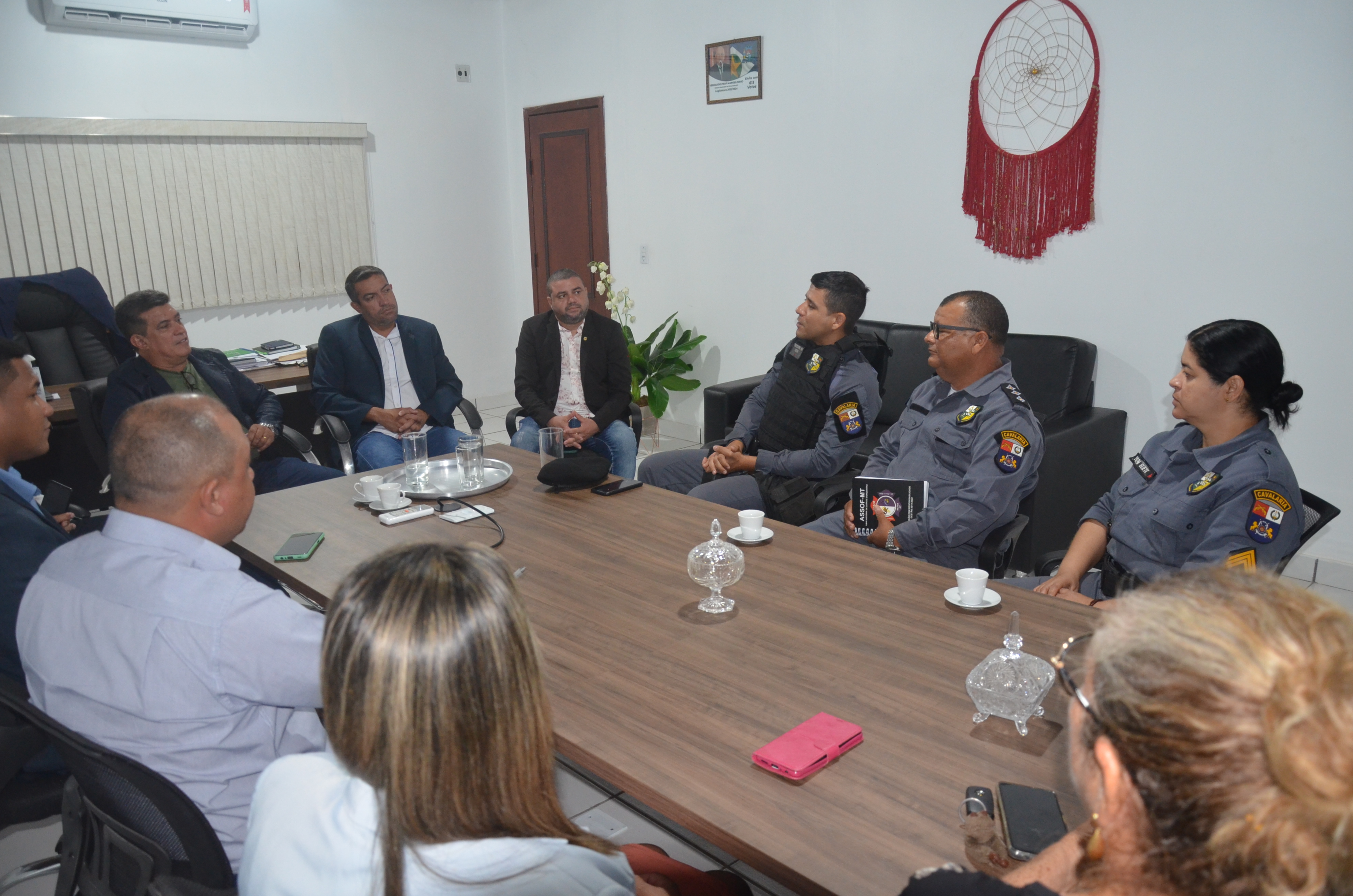 O comandante do Regimento de Policiamento Montado da Cavalaria da Polícia Militar, tenente-coronel Rocha e equipe, se reuniram na noite desta terça-feira (20), com os nove vereadores do município de Nossa Senhora do Livramento. A reunião aconteceu na presidência da Casa. O comandante foi expor um projeto que pretende expandir uma base operacional com reprodução e cria de equinos que a corporação mantém no município papa-banana. A base fica ao lado do campo experimental da Empaer.